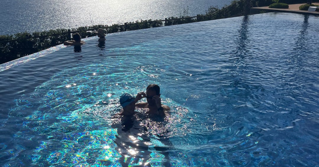 We were still in the pool at 6 PM when my husband glanced at his waterproof watch used to track our distance in the water and announced we needed to leave in forty minutes.